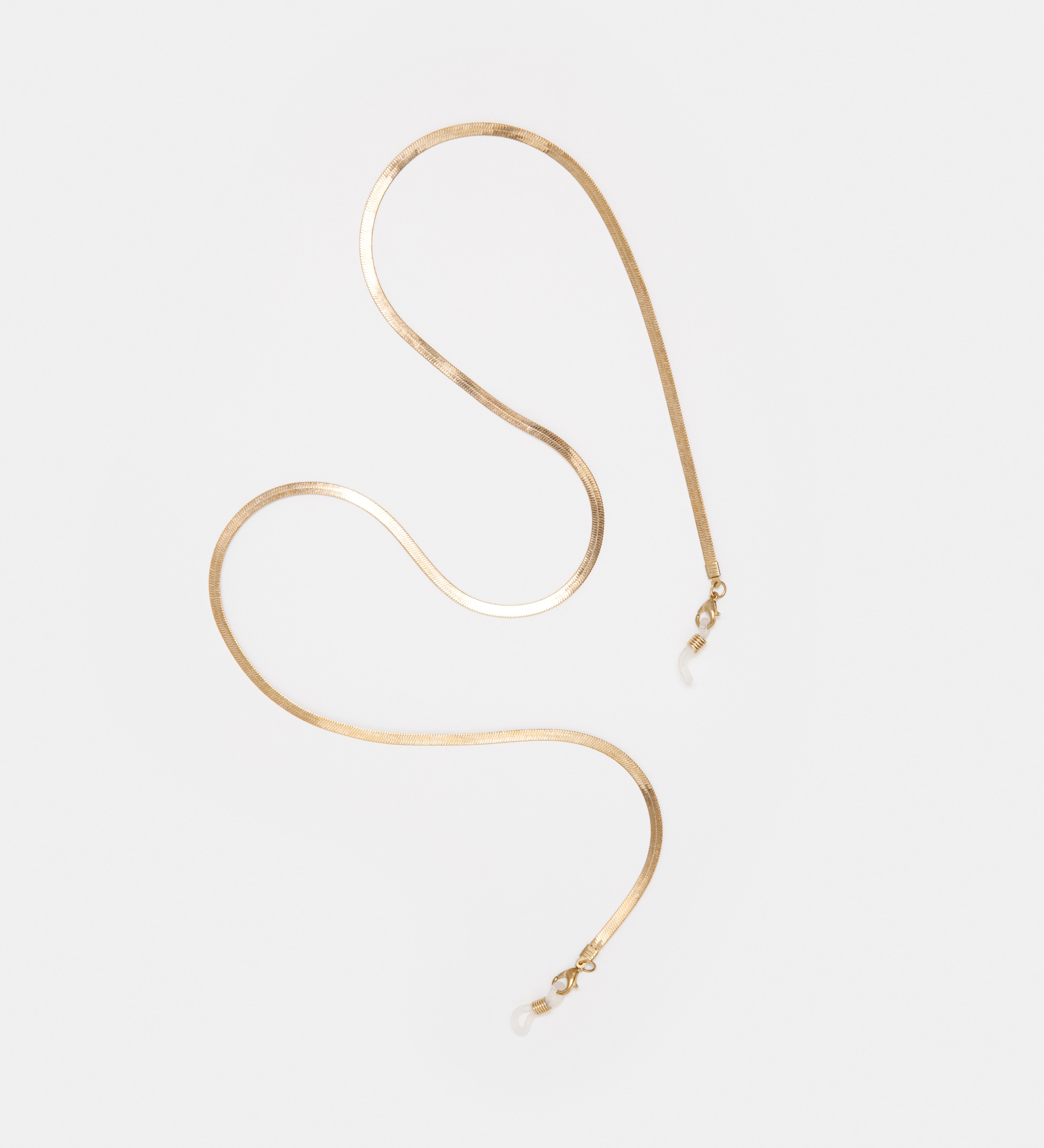 Virginia is our retro-inspired chain in shining gold. The streamlined design makes it the perfect piece both to wear with your glasses or as a necklace. Each chain has a durable metal clasp on each end that you can attach to any accessory.